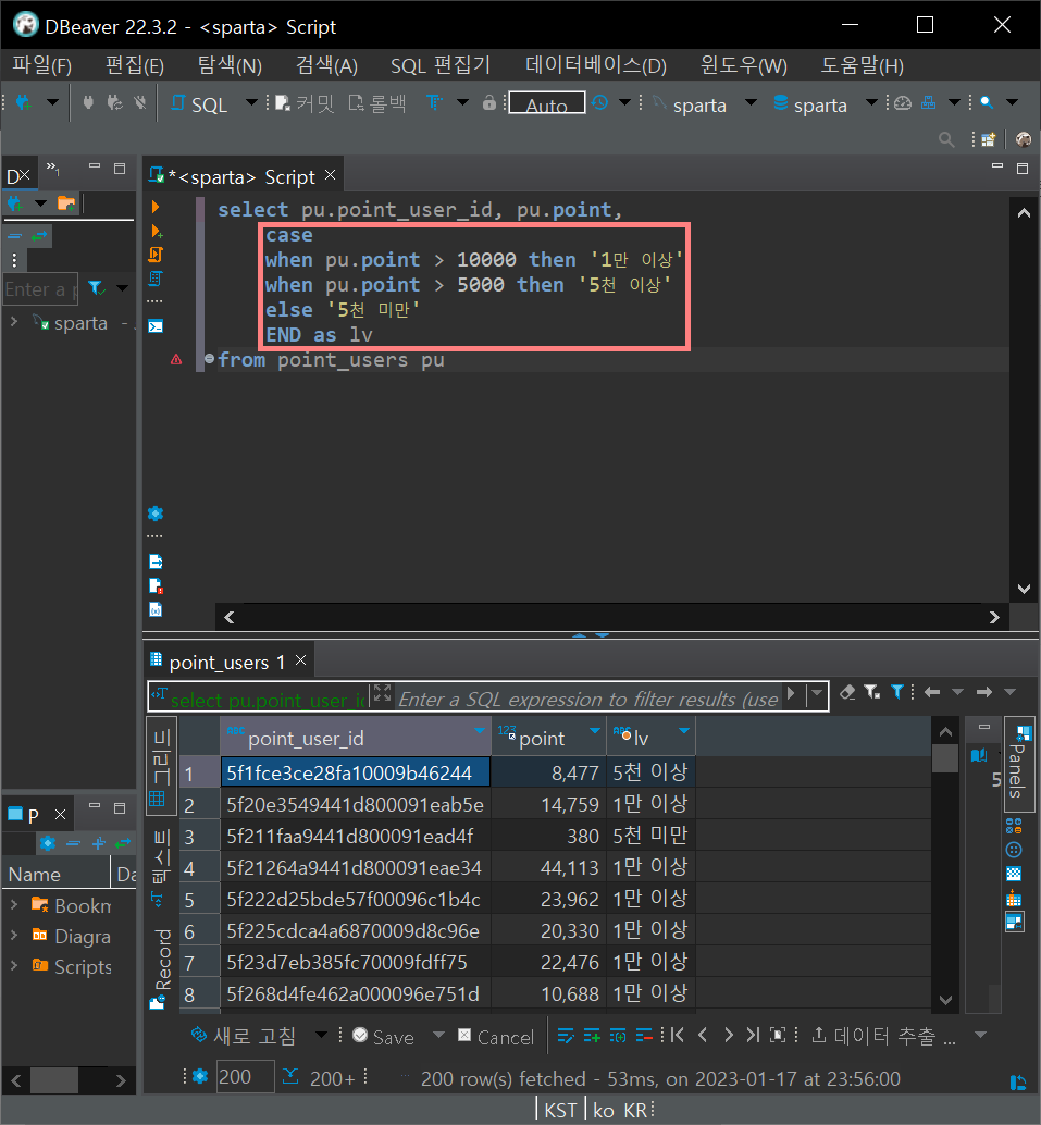 ex. 유저들의 포인트가 10000점 이상이면 '1만 이상' , 5000점 이상이면 '5천이상',