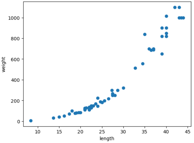 : 농어의 길이만 있어도 무게를 잘 예측 할 수 있을지?