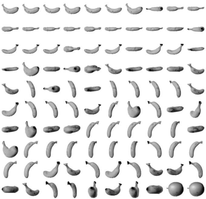 (사과나 파인애플은 대체로 형태가 동그랗고, 사진에서 차지하는 크기도 비슷하기 때문)