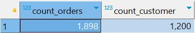 >> count_customer의 결과가 1,200인 이유는 customer_id(고객_id)를 DISTINCT로 중복 제거를 해줬기 때문.