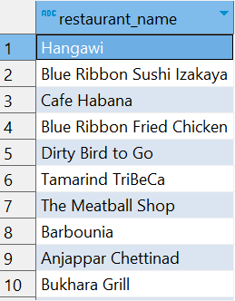 SELECT DISTINCT restaurant_name
