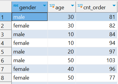 ① 성별, 연령 별 주문 건수 집계하기