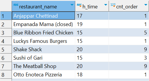 ① 음식점 별, 시간 별 주문 건수 집계하기