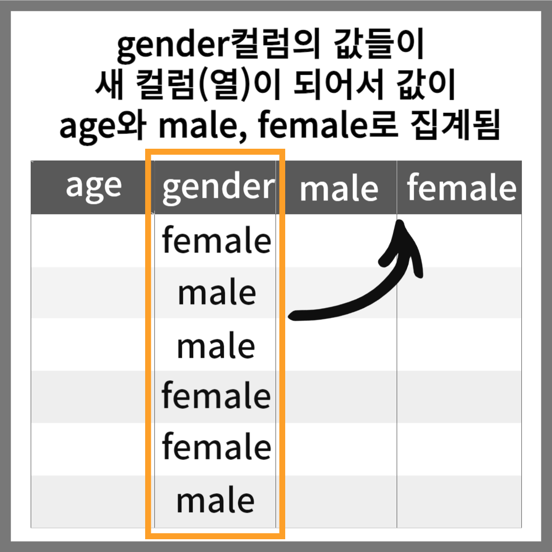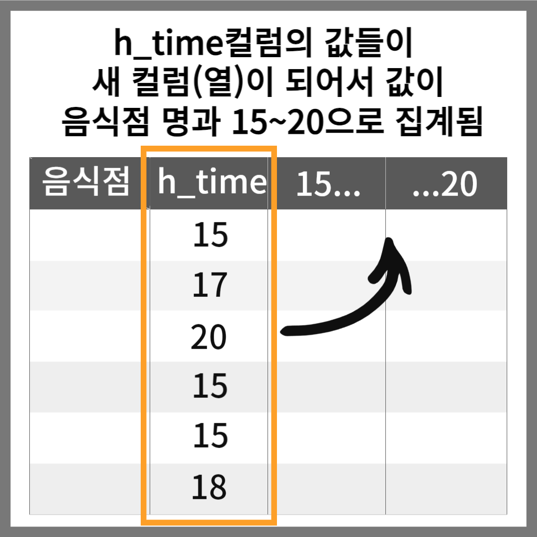 : 한 컬럼 안에 있던 데이터 값들을 열로 지정해 주는 것