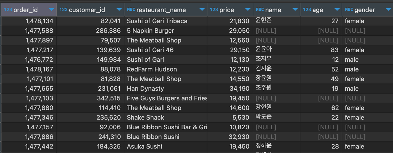 - NULL 제거 이전 데이터 상태
